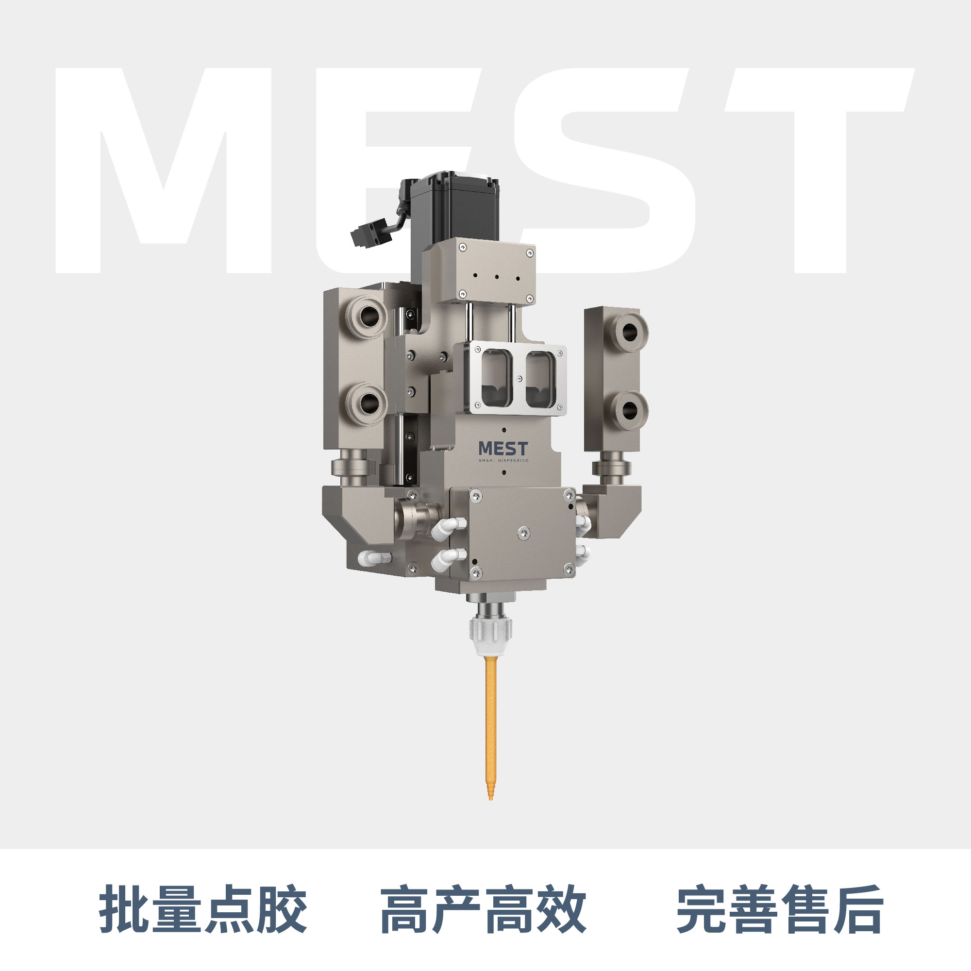 活塞注胶阀MEST-P20作为一种体积式注胶头, 适 用于处理从低粘度到高粘度、研磨性与非研磨性的单、双组份灌封材料。具体应用包括变压器和点火线圈绝缘灌封、保护 IGBT 的真空灌封等。